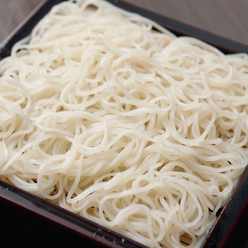 そば粉を挽いたときに蕎麦の実(玄蕎麦)の一番中心にある澱粉質の粉が更科粉。この更科粉を使った本格的江戸風そばは、蔵王の樹氷のような純白なそばで、淡白な中にも深い甘味と香を持った味わい深い逸品です。当店4代目が東京有楽町更科の藤村氏よりその技法を伝授されて以来10年の歳月を要して、山形の更科そばとして庄司屋の品書きに加わりました。